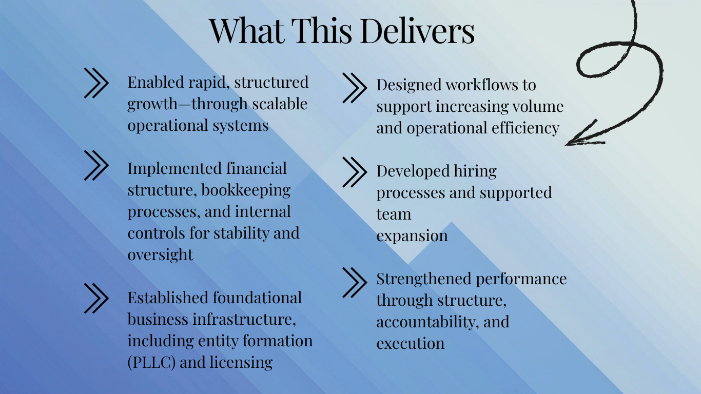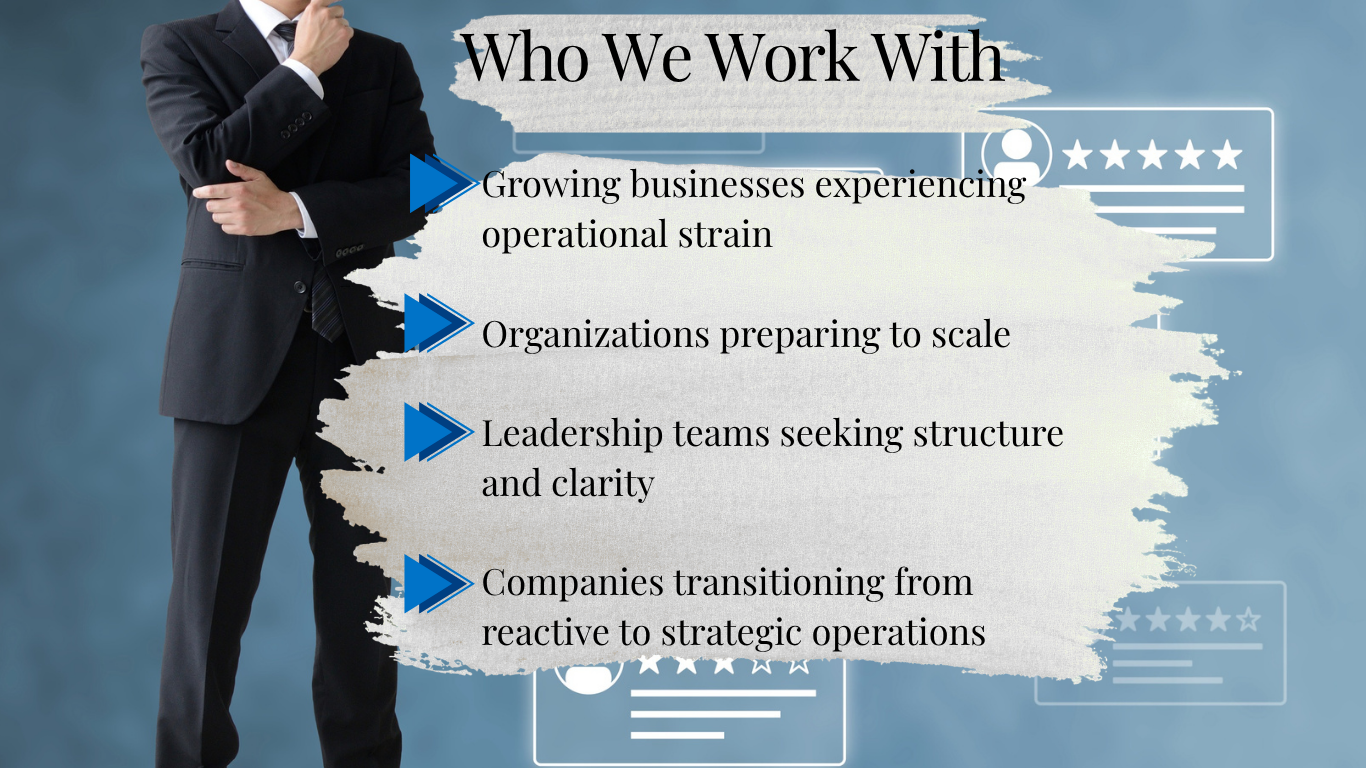 We help organizations move from reactive operations to structured, scalable systems that improve efficiency, accountability, and long-term growth.
