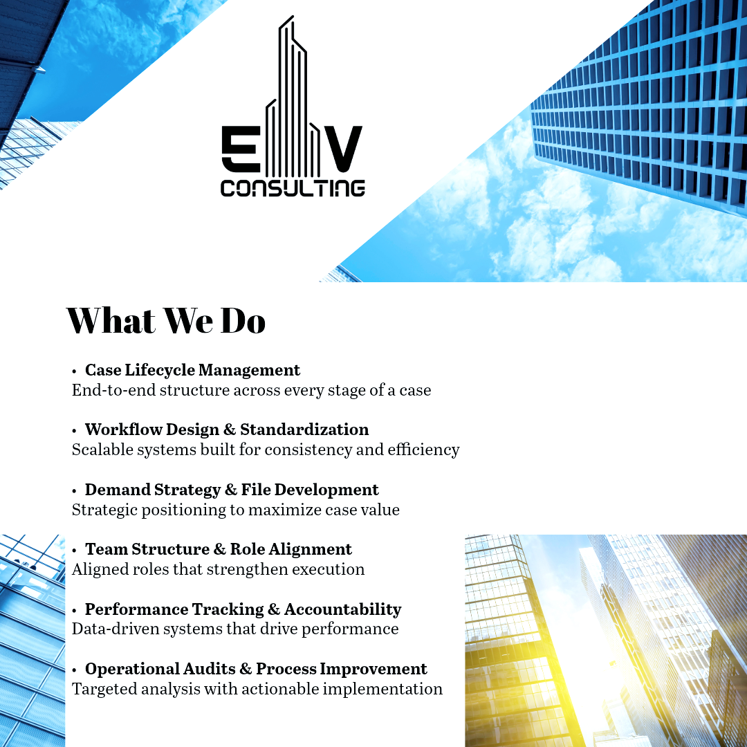 We help law firms move from reactive case management to structured, high-performing operations that increase efficiency, accountability, and results.